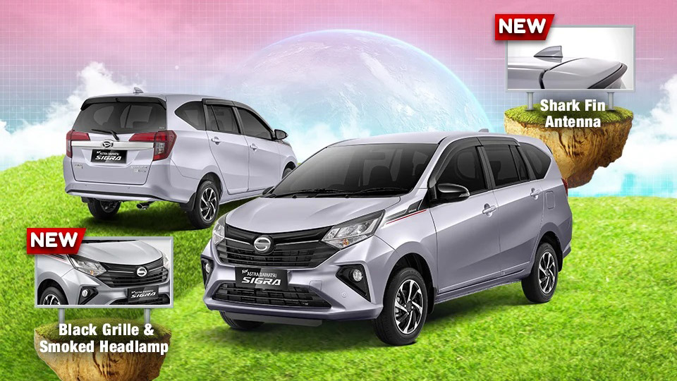 Pada sisi eksterior, Astra Daihatsu Sigra tampil lebih sporty dengan sentuhan kombinasi grill serta smoke LED berwarna gelap, ditambah dengan kaca spion samping berwarna hitam sesuai tren saat ini. Selain itu, Sigra dinamis tampil berkat desain baru velg berdiameter 14' inci, ditambah dengan Antena sirip hiu yang modern.